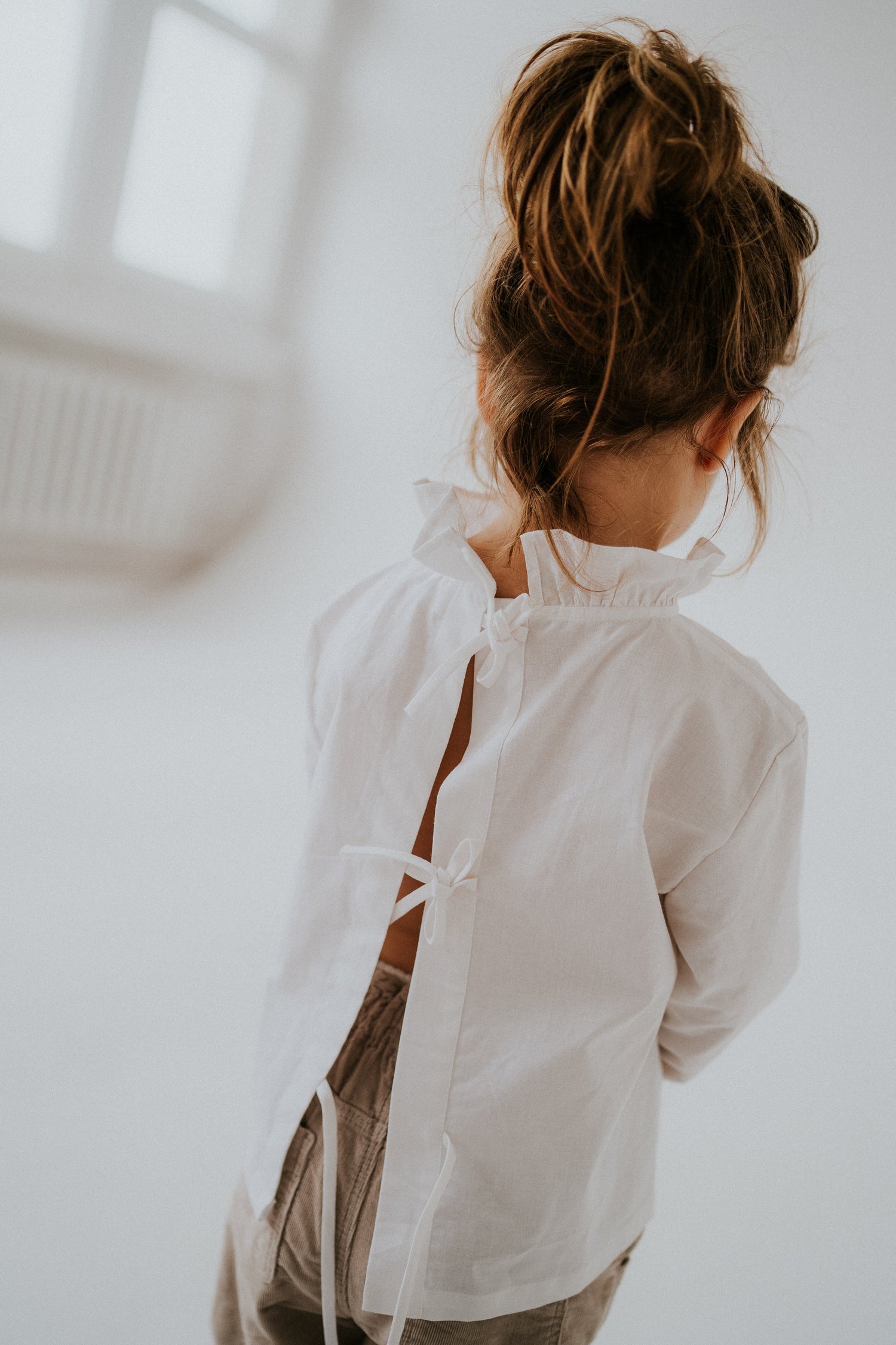 Koszula RITA - uszyta z zapomnianych kawałków bawełny, starannie wybranych z hurtowni materiałów w Polsce, koszula Rita to model ponadczasowy. Z delikatnym kołnierzykiem i uroczymi wiązaniami na plecach, Rita doskonale sprawdza się przez cały rok. W cieplejsze dni odkryte plecy nadają jej lekkości, a w chłodniejsze sezony idealnie komponuje się z ciepłym swetrem, pozwalając białemu kołnierzykowi subtelnie wystawać.